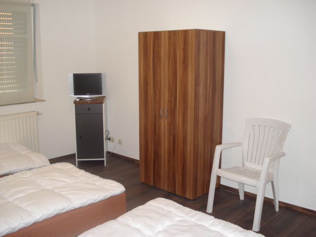 Die Monteurzimmer sind mit Betten, Schrank, Tisch, Stühlen, Fernsehgerät ausgestattet.